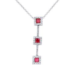 One 14KT White Gold 0.60ctw Ruby and Diamond Pendant with Chain. (3) Rubies with a total weight of 0.60cts. (46) Diamonds with a total weight of 0.30c