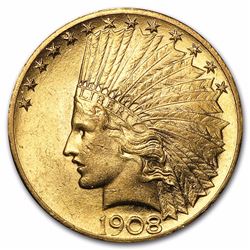 1908 $10 Indian Head Eagle Gold Coin with Motto121A - 1908 $10 Indian Head Eagle Gold Coin with Motto