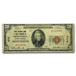 1929 $20 Greenfield National Bank Note145A - 1929 $20 Greenfield National Bank Note