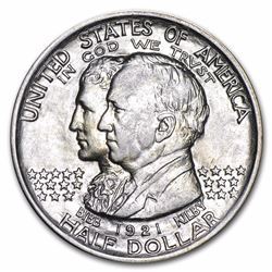 One 1921 Alabama Centennial Commemorative Silver Half Dollar Coin.