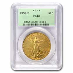 1909/8 $20 Saint Gaudens Double Eagle Gold Coin PCGS XF40151A - 1909/8 $20 Saint Gaudens Double Eagle Gold Coin PCGS XF40