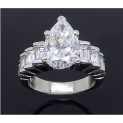 Platinum 3.90ctw Diamond Ring. (1) Pear shaped center Diamond with a total weight of 2.62cts with a color of D-E and clarity of SI-2. Side Diamonds wi
