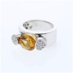 One 14KT White Gold 2.28ct Green Amethyst and Diamond Ring. (1) Green Amethyst with a total weight of 2.28cts. (104) Diamonds with a total weight of 0