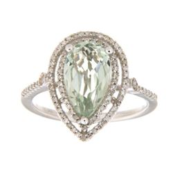 14KT White Gold 2.28ct Green Amethyst and Diamond Ring