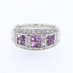 One 18KT White Gold 1.04ctw Pink Sapphire and Diamond Ring. (12) Pink Sapphires with a total weight of 1.04cts. (30) Diamonds with a total weight of 0