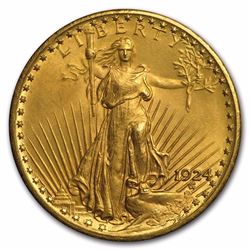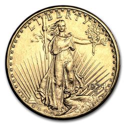 One 1924-D $20 Saint Gaudens Double Eagle Gold Coin Cleaned.
