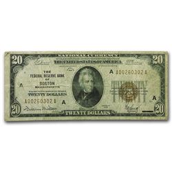 1929 $20 Boston Brown Seal Federal Reserve Bank Note