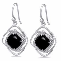 One pair of Sterling Silver Onyx Dangle Earrings.