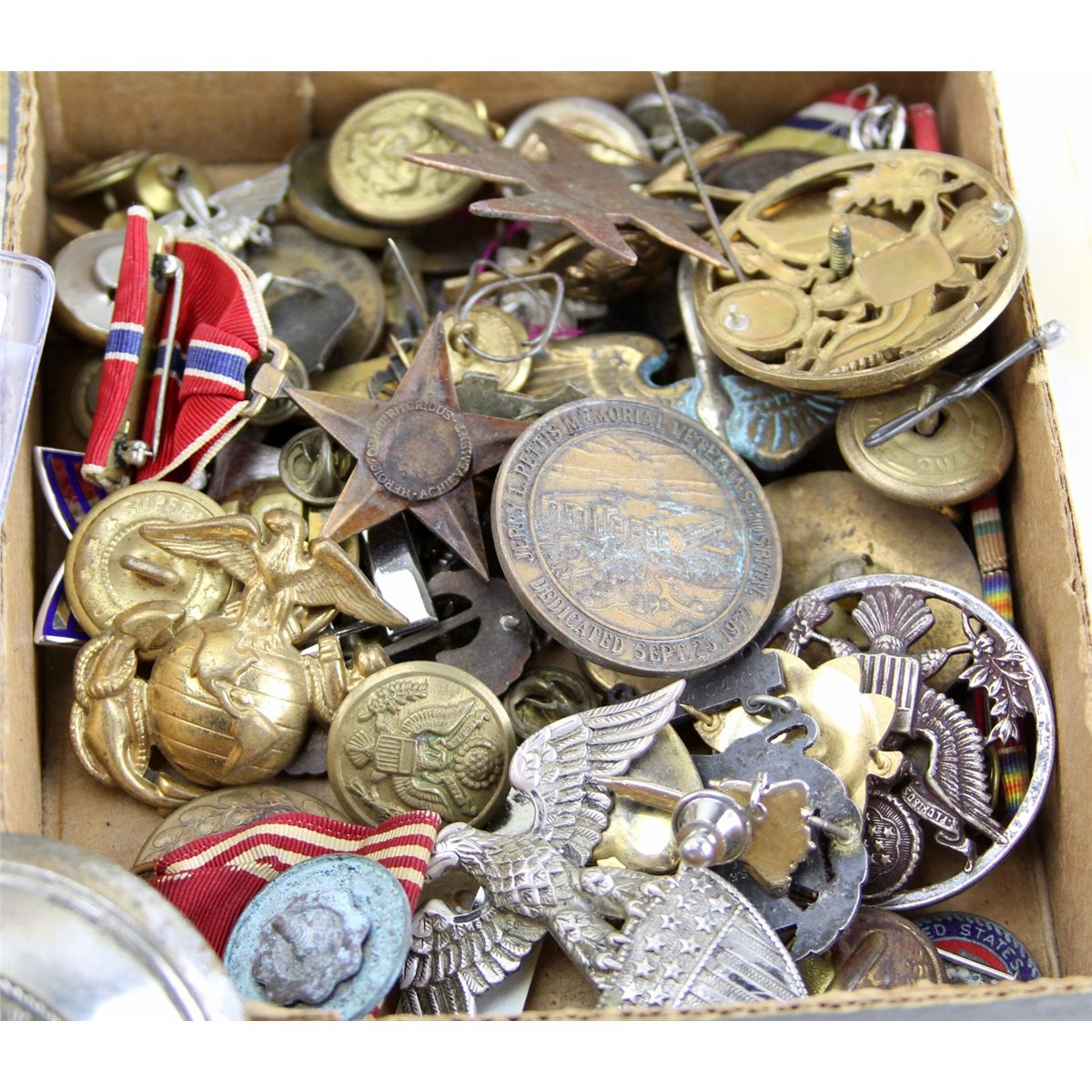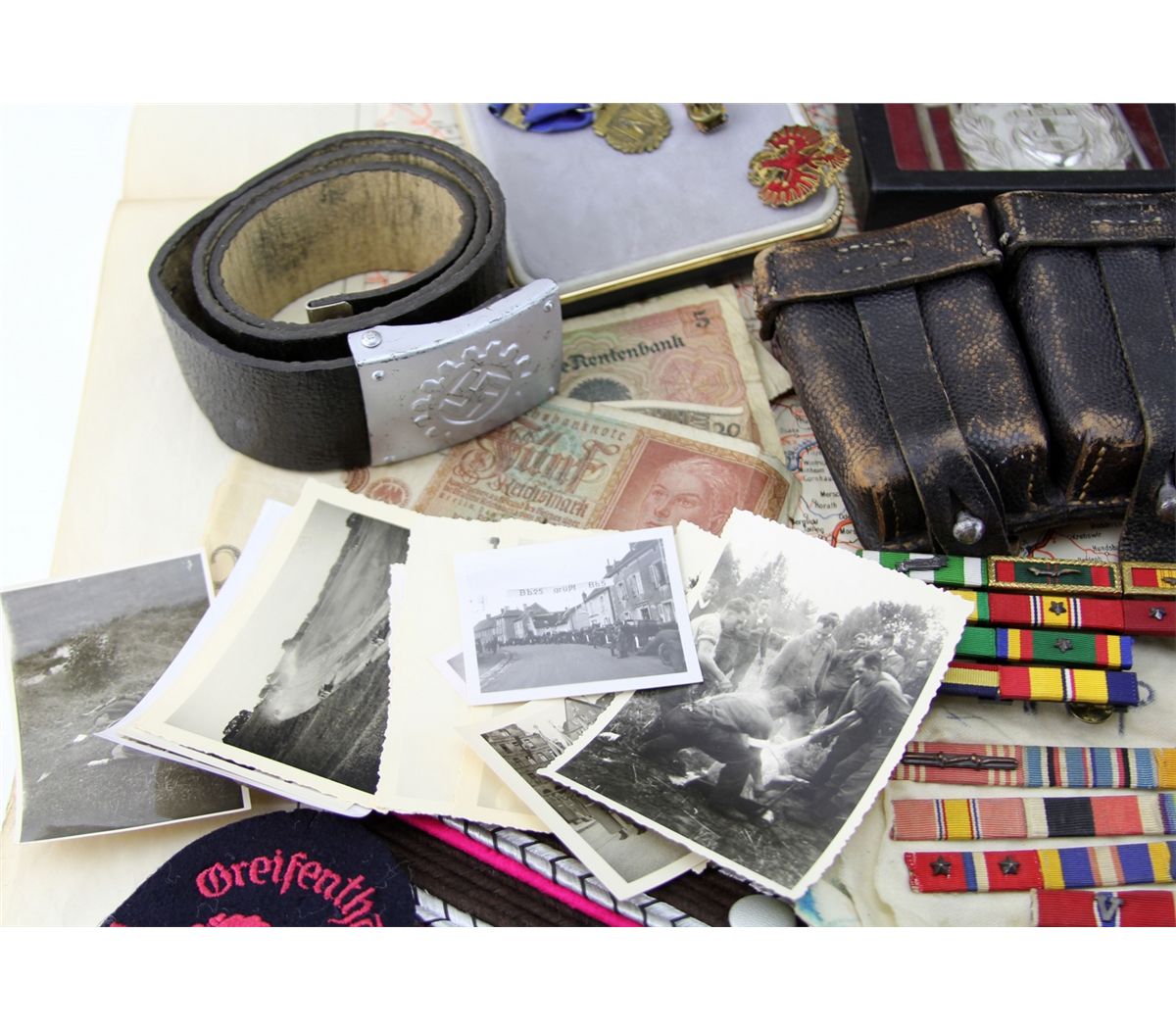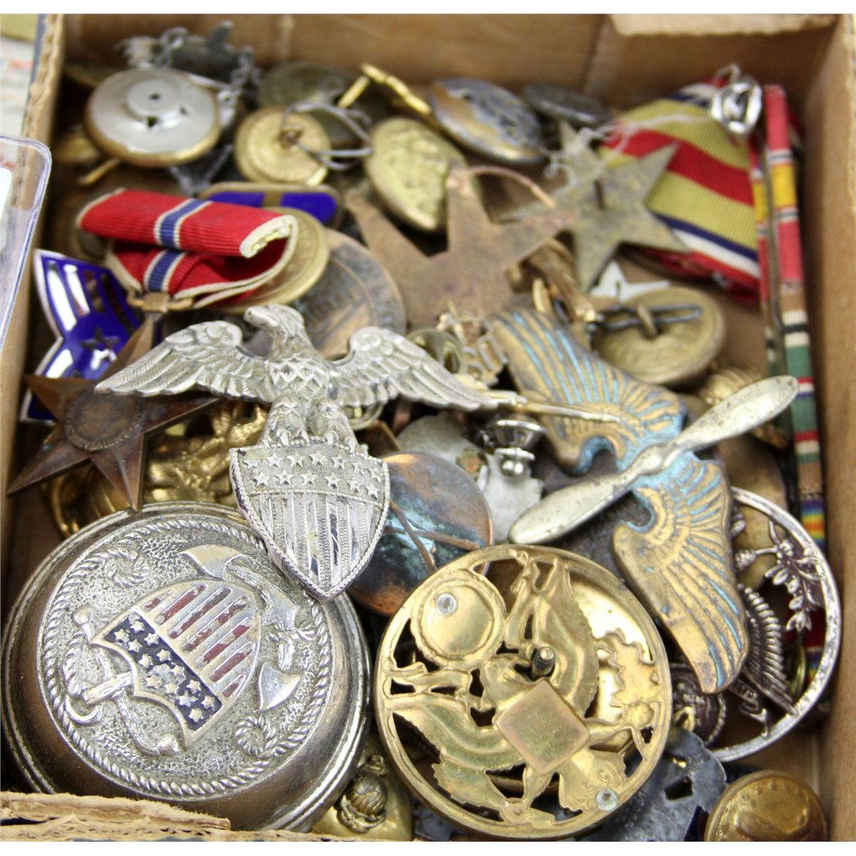 HUGE MILITARIA BONANZA LOT MULTI CONFLICT Mixed militaria lot with huge variety of items spanning multiple countries and 20th Century conflicts. Many WWII era US and German items, as well as letters, currency, gear, medals, insignia, maps, compasses, ephemera, and much more. Country: Mixed Condition: Various conditions