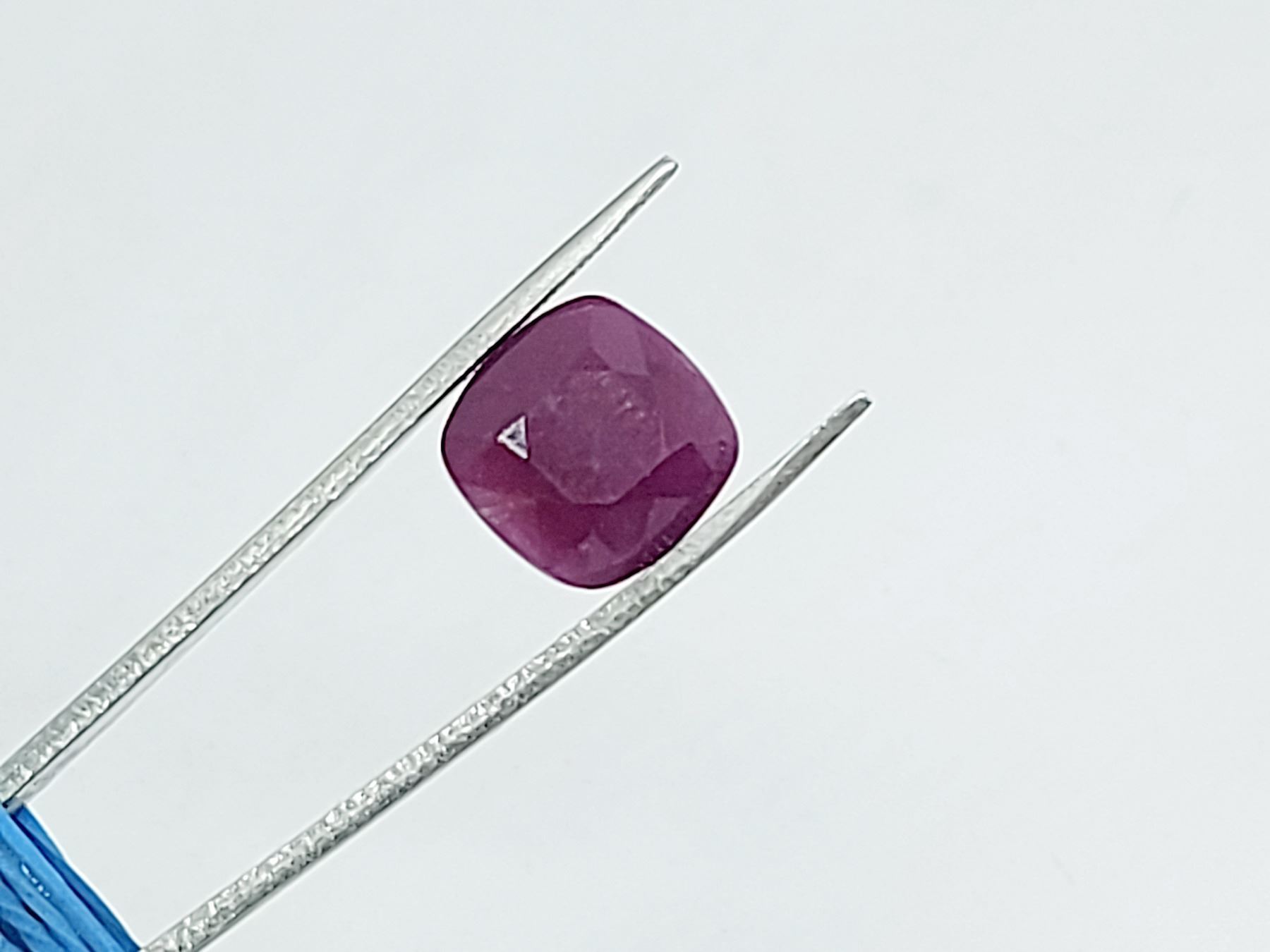 13.85 ct. 11.5 x 11.6 x 10.8 mm Colour: Dark Pigeon Blood Red , Shape: Cushion Cut , Clarity: I , Origin: Thailand Untreated