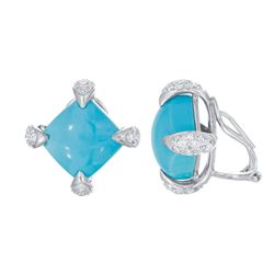 One 14KT White Gold 14.33ctw Turquoise and Diamond Earrings. (2) Turquoise stones with a total weight of 14.33cts. (80) Diamonds with a total weight o