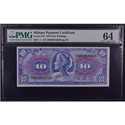One 1964-1969 $10 Military Payment Certificate PMG 64.