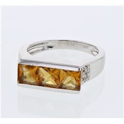 One 14KT White Gold 1.57ctw Citrine and Diamond Ring. (3) Citrine stones with a total weight of 1.57cts. (8) Diamonds with a total weight of 0.14cts.