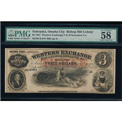 1857 $3 Western Exchange Obsolete Note PMG 58283 - 1857 $3 Western Exchange Obsolete Note PMG 58