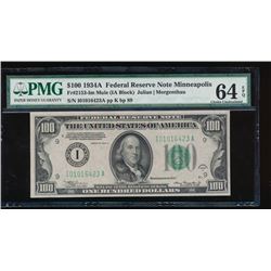 One 1934A $100 Minneapolis Federal Reserve Note PMG 64EPQ.