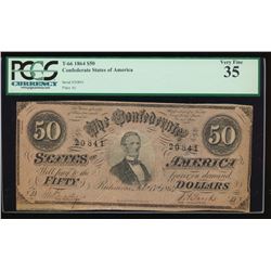 1864 $50 Confederate States of America Note PCGS 35362 - 1864 $50 Confederate States of America Note PCGS 35