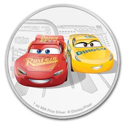 One 2017 $2 Cars Lightening McQueen and Cruz Ramirez Niue Silver Coin. Mintage of 10,000.