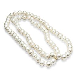 One White Shell Bead Hand Knotted Pearl Necklace. 36 inches in length.