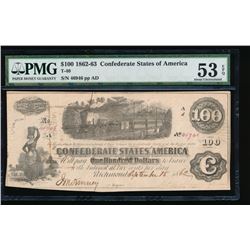1862-63 $100 Confederate States of America Note PMG 53EPQ390 - 1862-63 $100 Confederate States of America Note PMG 53EPQ