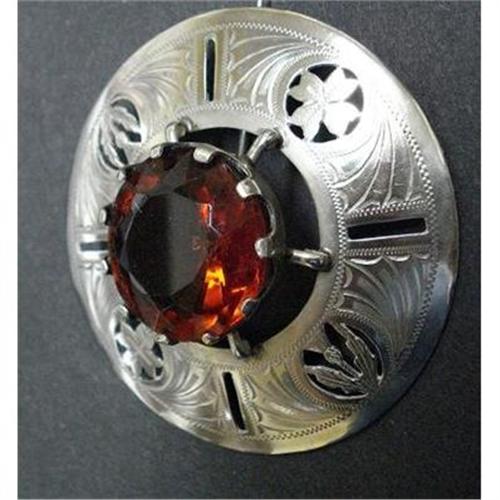 UNIQUE AND HUGE VINTAGE KILT PIN, DEPICTING tHISTLE BLOSSOM, IT IS MADE OF SILVER TONE METAL (NOT MARKED), WITH EXQUISITE ENGRAVONGS AND OPEN WORK DEPICTING THISTLE AND BLOSSOMS - GORGEOUS HUGE STONE IS ELEVATED AND HELD BY MANY CLAWS - as per images - Measures about 3 1/4" in diam., x 1 1/2" high and stone measures about 1 1/2" in diam.Excellent used condition, please see our images - US Buyer to pay 8.00 for shipping plus insurance.THANKS.