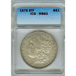 1878 8 TF Morgan silver dollar in ICG Holder MS63