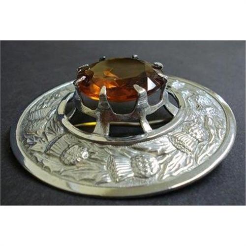 HUGE VINTAGE SCOTTISH KILT BROOCH, SILVER TONE DEPICTING THISTLE BLOSSOMS WITH LARGE ROUND, FACETED STONE IN THE CENTER HELD BY PRONGS, bEAUTIFUL DETAIL, STRONG AND LARGE MADE TO HOLD STRONG FABRIC.Excellent condition, Measuring close to 3 1/2 inch in diam., Stone measures about 1 1/4 in diam., US Buyer please remit 7.00 for shipping plus insurance.THANKS.