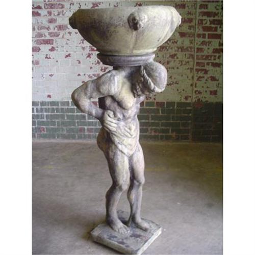 This Atlas with lion head planter has terrific antiqued patina that will surely bring back the olde world statuary look (of the most prominent pieces found centuries ago) to your home.