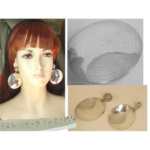 Imagine the model that walked down the runway with these HUGE sterling disc earring! The length is a whopping 3" long and they are signed on the back with TH-83 925 Mexico. These have spheres on the front which give them dimension. You have to be secure when you wear these stunners because you are going to be blushing from all the compliments you are going to get. THese are pierced and they are hand wrought.