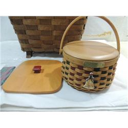 LOT 2 WOOD WOVEN BASKETS: (1) LONGABERGER & LID. AS SHOWN. VIEW PICTURE FOR DETAIL.