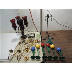LOT 17 BRASS, IRON & METAL CANDLE HOLDERS