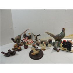 LOT 16 WOOD & CERAMIC ASSORTED BIRDS: EAGLE, DUCKS, PHEASANT AND MUCH MORE. AS SHOWN. VIEW PICTURE OFR DETAIL.