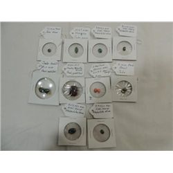LOT 21 (9) FOREIGN COINS & 4 GOLD FOIL US POSTAGE