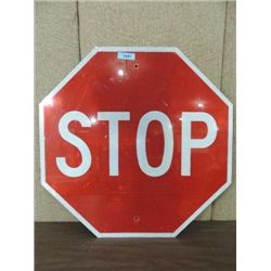 30X30 OCTAGON REFLECTIVE ALUMINUM STOP SIGN. TAGGED AS DECOMMISSIONED. AS SHOWN. VIEW PICTURE FOR DETAIL