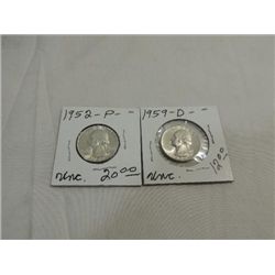 LOT 2 1952 & 59-D UNC WASHINGTON QUARTERS