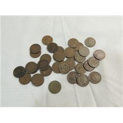 LOT 35 US COINS MIX DATE CIRCULATED INDIAN HEAD PENNIES. AS SHOWN. VIEW PICTURE FOR DETAIL.