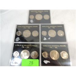 LOT 5 SET 1976 BICENTENNIAL US COINS DOLLAR, HALF