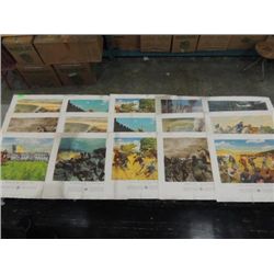 LOT 15 1953 24X20 THE U.S ARMY IN ACTION PRINTS. 1776 TO 1951 VARIOUS MILITARY ACTIONS & WARS. AS SHOWN. VIEW PICTURE FOR DETAIL.