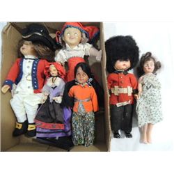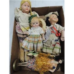 LOT 8 VINTAGE MINIATURE DOLLS OF VARIOUS STYLES. AS SHOWN. VIEW PICTURE FOR DETAIL.