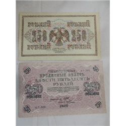 LOT 2 1917 SOVIET UNION RUSSIAN 250 RUBLES UNC