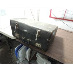 VINTAGE LEATHER EXPANDABLE SUIT OR TRAVEL CASE. INCLUDED THAT 1920 SET OF RARE AMERICAN LAW BOOKS. AS SHOWN. VIEW PICTURE FOR DETAIL.