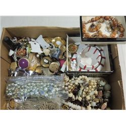 JACK POT LOT COSTUME JEWELRY BEADED NECKLACES, EARRINGS, PINS AND MORE. AS SHOWN. VIEW PICTURE FOR DETAIL.