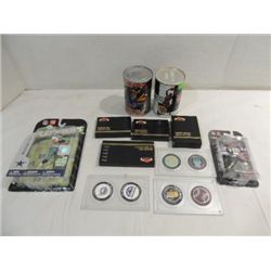 LOT 17 BASEBALL & FOOTBALL COLLECTIBLES: MCGWIRE 23KT CARD, 11 CHICAGO BEARS MEDALLIONS, BASEBALL IMMORTALS CARDS AND MORE. AS SHOWN. VIEW PIC...