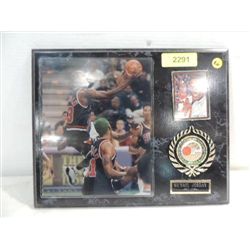 15X12 PLAQUE MICHAEL JORDAN BASKETBALL PHOTO & CARD. AS SHOWN. VIEW PICTURE FOR DETAIL.