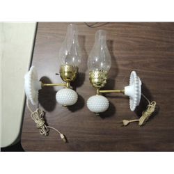 LOT 2 VINTAGE WALL HANGING HOBNAIL MILK GLASS LAMP