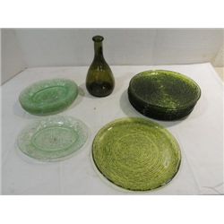 LOT 15 VINTAGE GREEN GLASSWARE: 9 DINNER PLATES, 1
