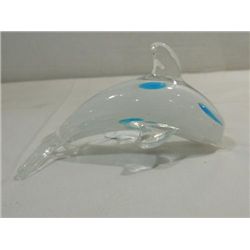 MINCHELLA MURANO STYLE WHITE & BLUE GLASS DOLPHIN. 6"L. AS SHOWN. VIEW PICTURE FOR DETAIL.