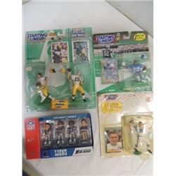LOT 11 SPORTS COLLECTIBLES: 4 SPORTS CARD ON PLAQUES, 2 FOOTBALL TEAM CARD PACKS. MINI GLOVE AND MORE. AS SHOWN. VIEW PICTURE FOR DETAIL.