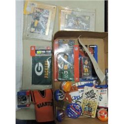 BOX LOT OF SPORTS COLLECTIBLES: PACKER CARDS, MINI