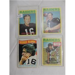 LOT 4 1972 (3) & 75 (1) TOPPS FOOTBALL PLAYER CARD: ROOKIE EUGENE UPSHAW, GEORGE BLANDA, DARYLE LAMONICA. AS SHOWN. VIEW PICTURE FOR DETAIL.
