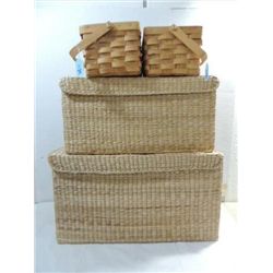 LOT 4 (2) NESTED REED WOVEN FLIP TOP BASKETS & 2